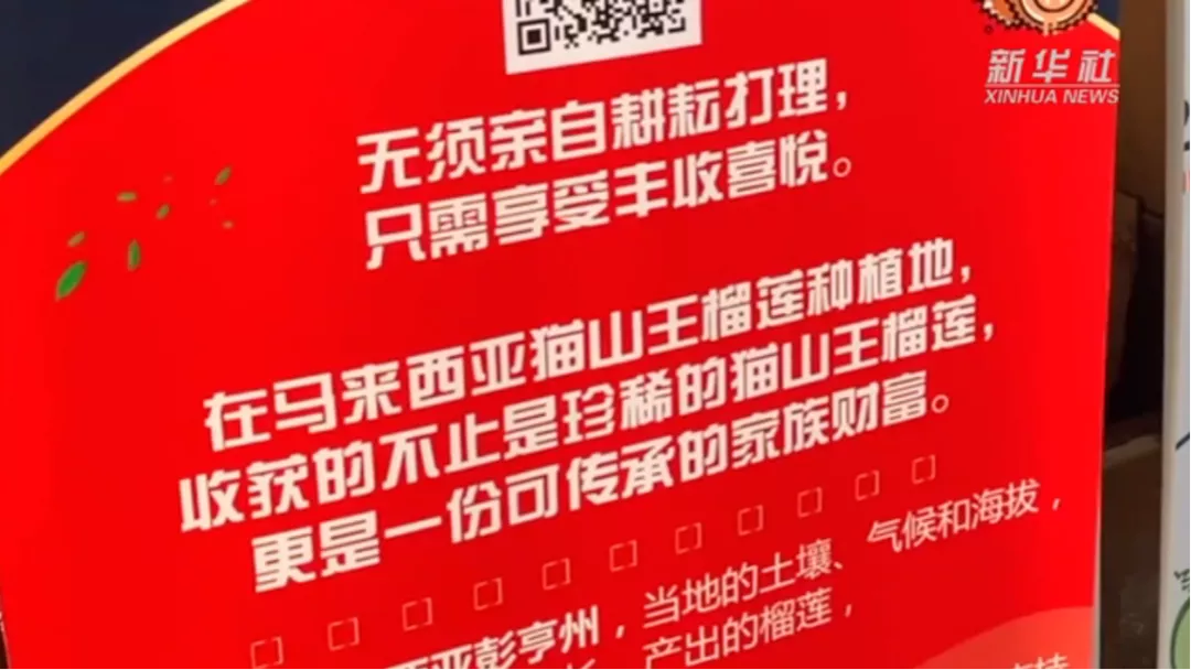 在该“心灵成长”培训场所的一张海报上,赫然写着这样的语句:“无须亲自耕耘打理,只需享受丰收喜悦。在马来西亚猫山王榴莲种植地,收获的不止是珍稀的猫山王榴莲,更是一份可传承的家族财富。”