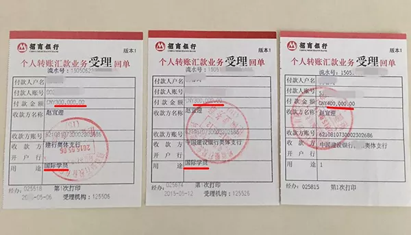 ▲“创造丰盛”前学员出示的部分汇款单,除此之外所交费用无任何收据和合同。图源澎湃新闻。