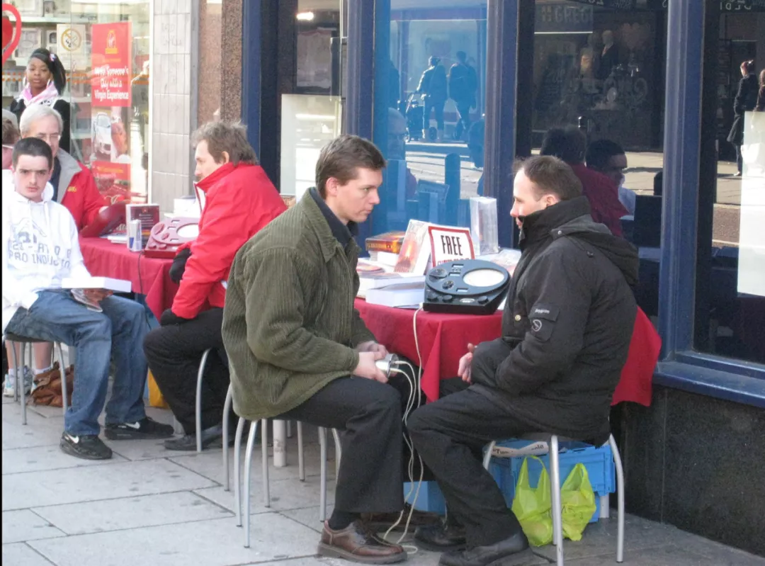 ▲“科学教派”在街头为路人进行“听析”。来源:flickr