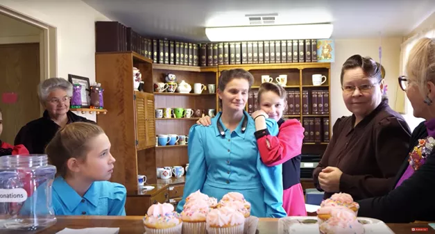 第二天,摄制组终于找到了一家开着门的手工店。在这里,他们见到了生活在此处的居民——flds的信徒们。