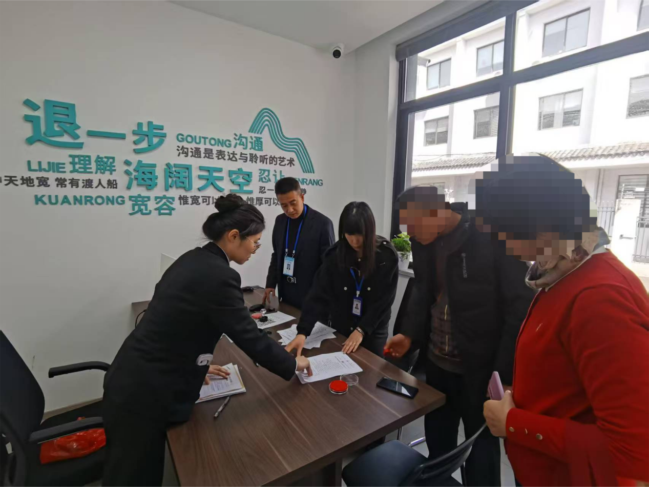 约定签署调解协议的当天,林阿婆却因对是否构成伤残仍有疑问突然反悔,水果店主也因调解进展的反复产生了抗拒心理,大家不免有些着急——双方难得达成一致,若这时出岔子,也许再难调解成功。陈晓娇立即联系了双方当事人,先向水果店主释明了《中华人民共和国民法典》关于安全保障义务的规定,又向林阿婆一家释明了伤残等级鉴定的规定及标准,引导林阿婆向医院咨询病情、对照标准,并指出了其诉请中明显不合理的部分,最后又与金飞和林建飞重新商定了调解工作方案并提供法律指导。做足了准备后,金飞和林建飞多次前往林阿婆处与其交谈,不仅对林阿婆表示了充分的理解和支持,也向她点明:案件审理流程更长,无形中会给其增加许多压力;儿女也有生活和工作,无法一直兼顾;若存在疑义,还可自行咨询专业人士,提出自身需求,再组织双方调解。与此同时,他们也向水果店主承诺,一定会将调解工作做到底、做到位。