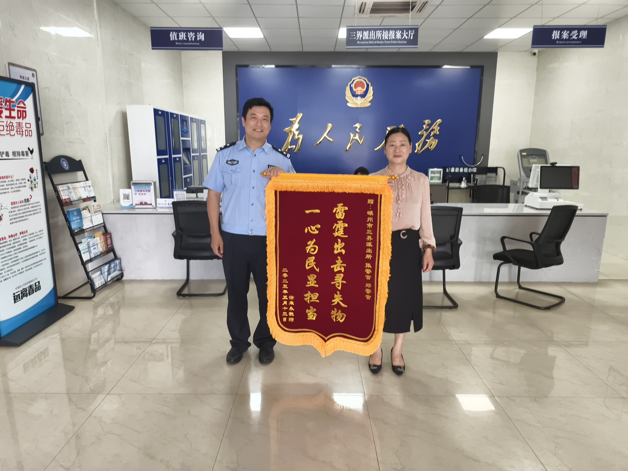 近日,一位女士拿着锦旗到嵊州市公安局三界派出所,说要找张警官,表达感谢。事情要追溯到五月的一个中午,嵊州三界高新园区伟刚机械的保安员在园区开展日常巡逻,看到有一大包黑黑的物品在十字路口,作为派出所兼职巡防队的队员们走近一看,原来是一包新的领带,看样子可能是路过的车辆掉的。