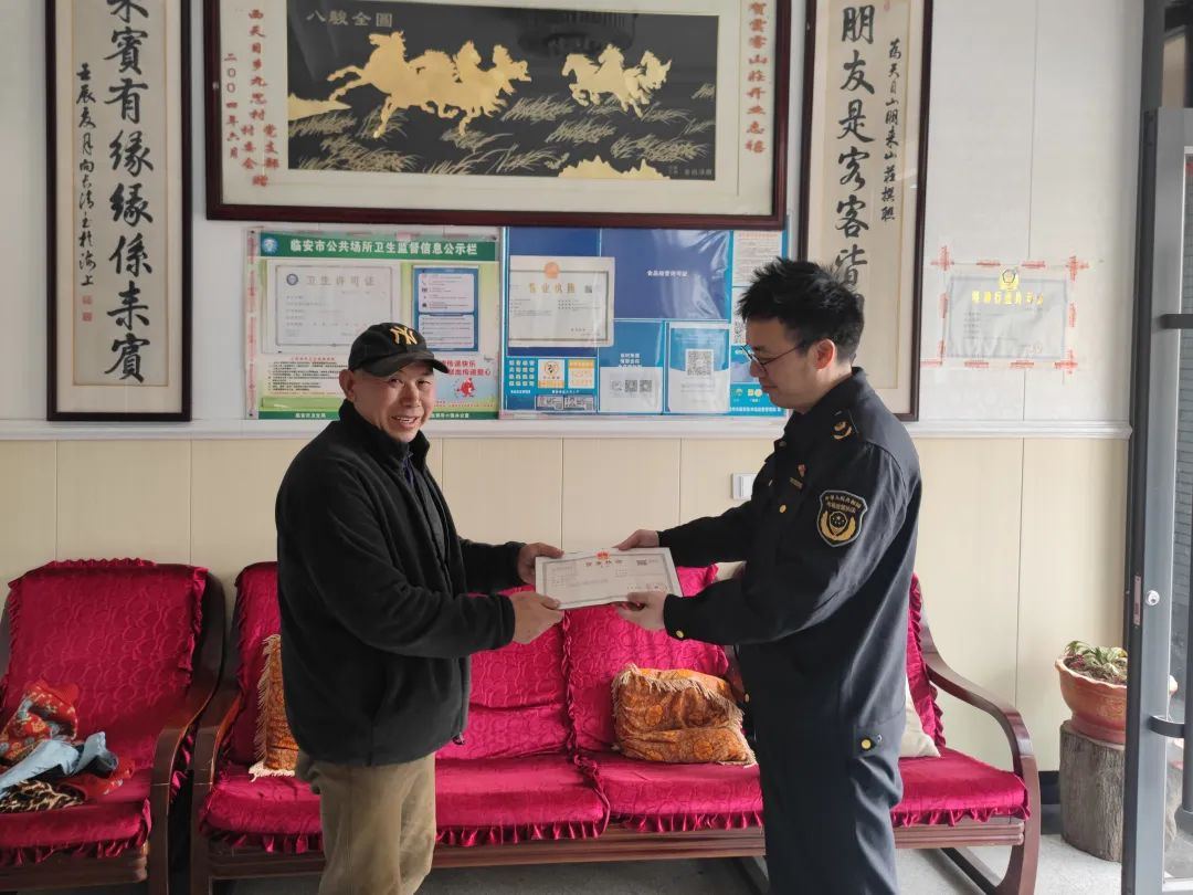 “老童,你家的农家乐食品经营许可证这周要过期了!”正在例行走访的告岭村网格员计菲发现这个问题后,马上向经营者童老板指出。“最近儿子不在家,我自己也办不明白,下周让他请假去一趟镇政府。”“食品安全是大事,我帮你想想办法。”说话间,计菲就将情况上报,经镇综合信息指挥室流转,接到通知的驻镇市场监管干部和联村干部很快就赶到老童家,现场收集材料后立即帮忙办理了许可证延期。