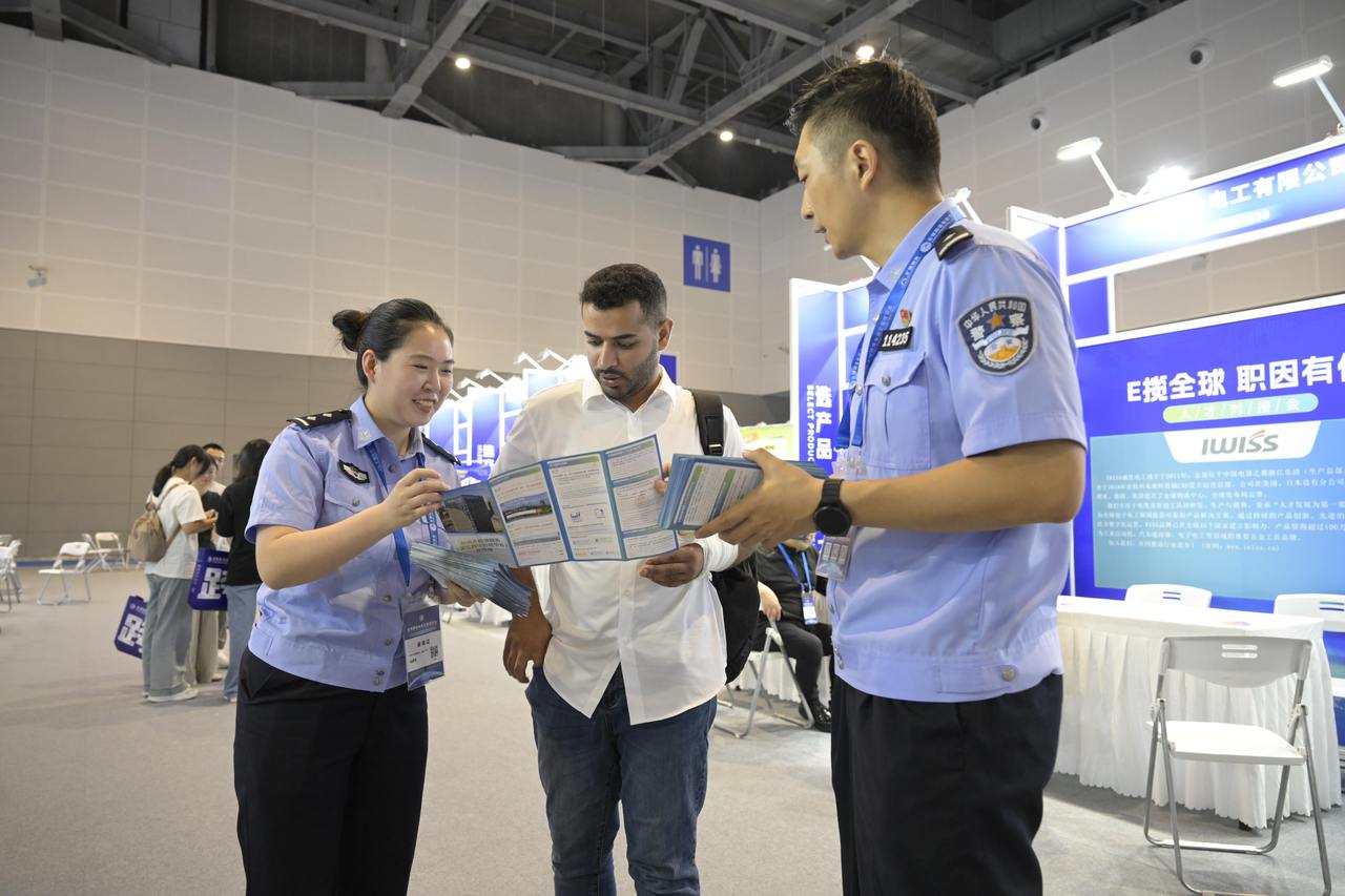 7月10日,杭州大会展中心内人头攒动,全球跨境电商交易博览会暨“外贸优品 科技出海”活动在此隆重开幕。在热闹非凡的展馆中,“杭州外籍跨境电商人才综合服务平台”展区格外引人注目,滨江公安民警正热情地向参观者介绍平台的各项功能和使用方法,现场咨询的人络绎不绝。