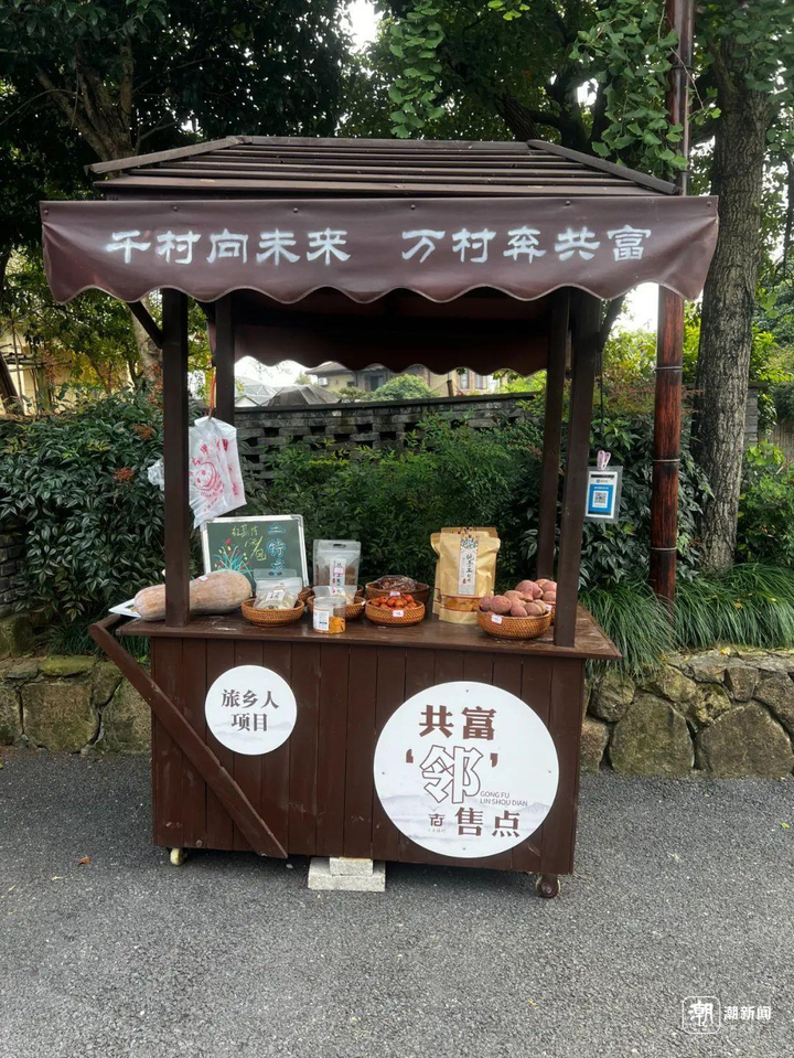 81岁的宓奶奶在自家的围墙边支起了一个共富摊位。2元一个的红柿子、10元一袋的桂花干、15元一盒的咸鸭蛋……宓奶奶说,这些都是自家生产的农产品。靠着这个无人看守的共富摊位,一天最少有200元的收入。