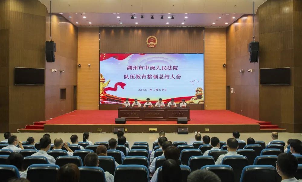 8月20日,湖州中院召开队伍教育整顿总结大会,全面总结队伍教育整顿取得的积极成效和宝贵经验,并对巩固拓展队伍教育整顿成果、推动下一步工作进行再部署,湖州中院党组书记、代院长杜前出席并讲话,湖州中院在院院领导班子成员、审委会专委,全体在编干警、司法雇员参会。