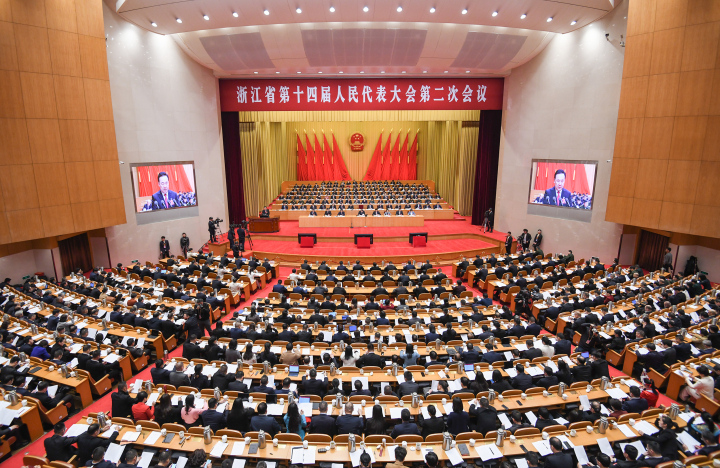 今天上午9时,省十四届人大二次会议在杭州隆重开幕。开幕会由大会执行主席、主席团常务主席易炼红主持。大会执行主席和主席团成员在主席台就座。省长王浩作政府工作报告。