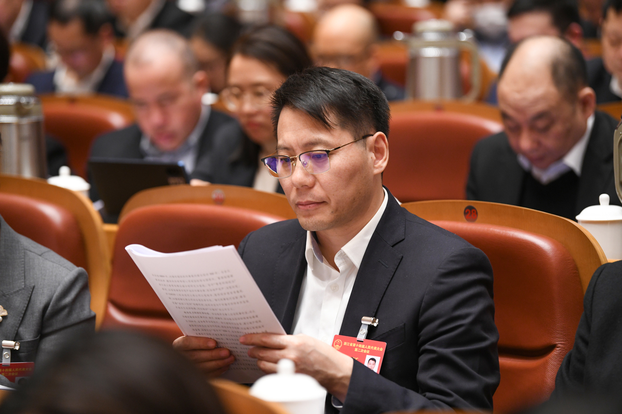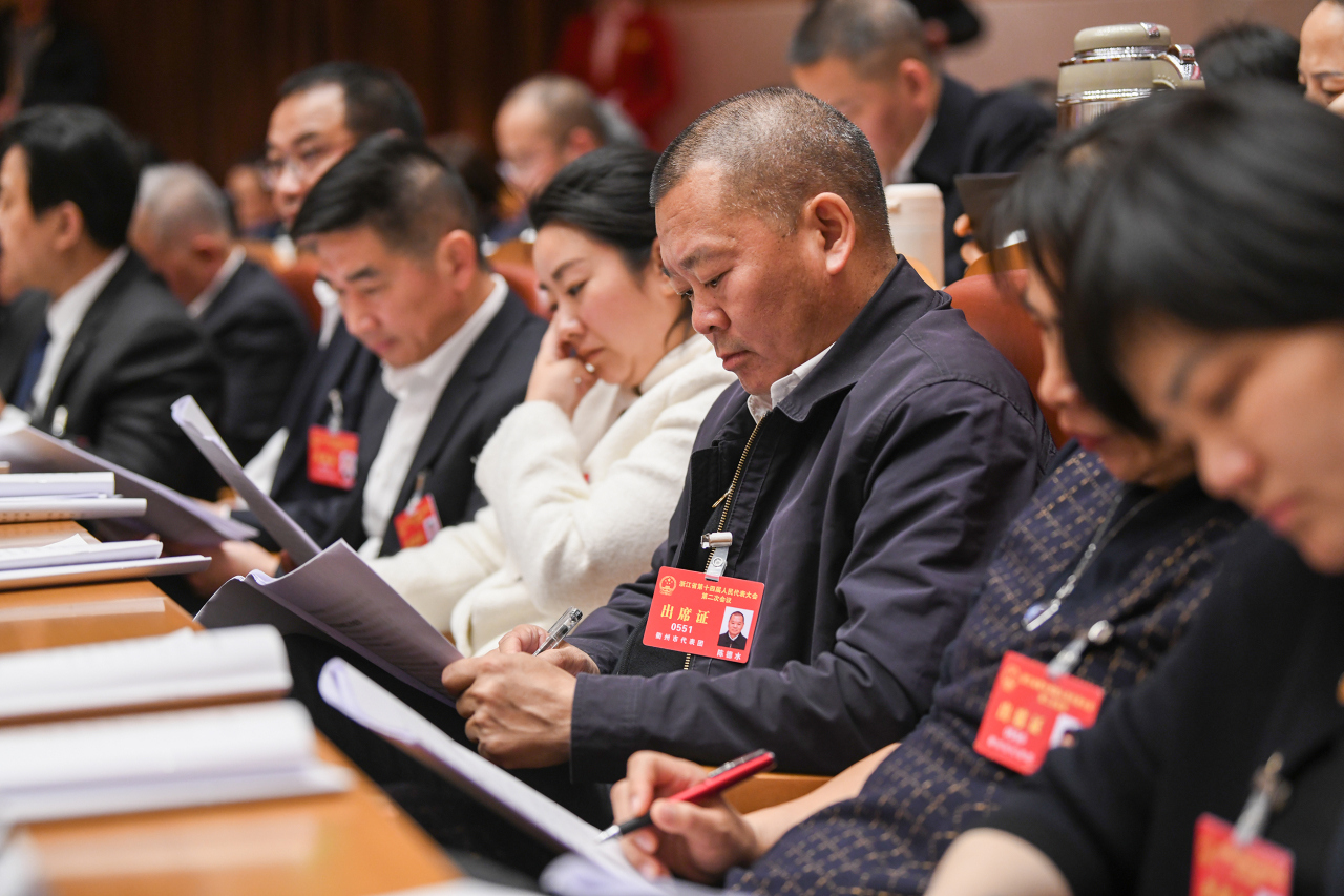 1月24日下午,在省十四届人大二次会议上,代表们认真聆听报告。